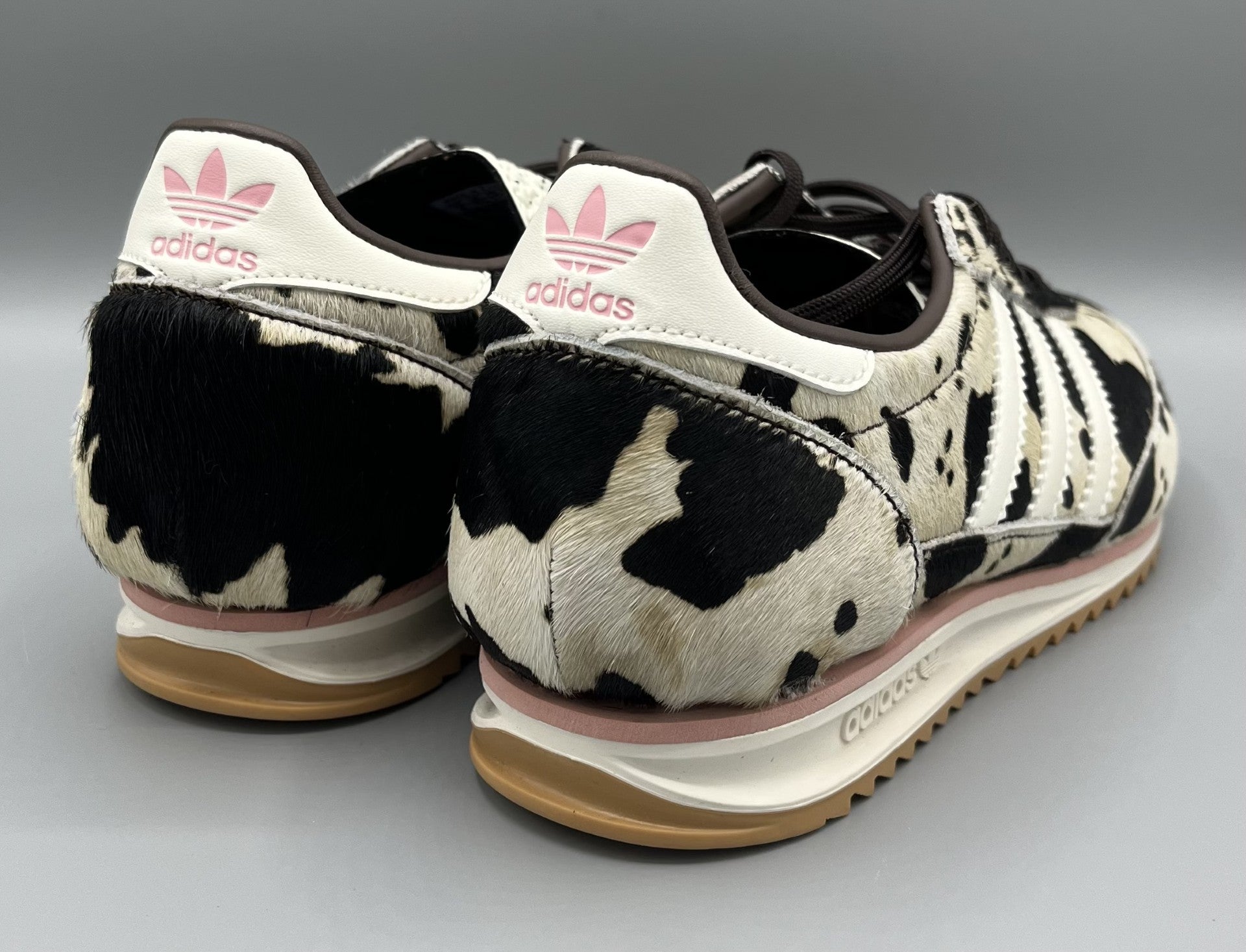 Adidas continue de nous surprendre avec ce nouveau coloris "Cow Print" sur la classique SL 72. Le design dispose d'un imprimé vache en fausse fourrure avec des subtils détails rose, c'est la paire à avoir pour tous les fans de motifs animal qui veulent jouer l'originalité !