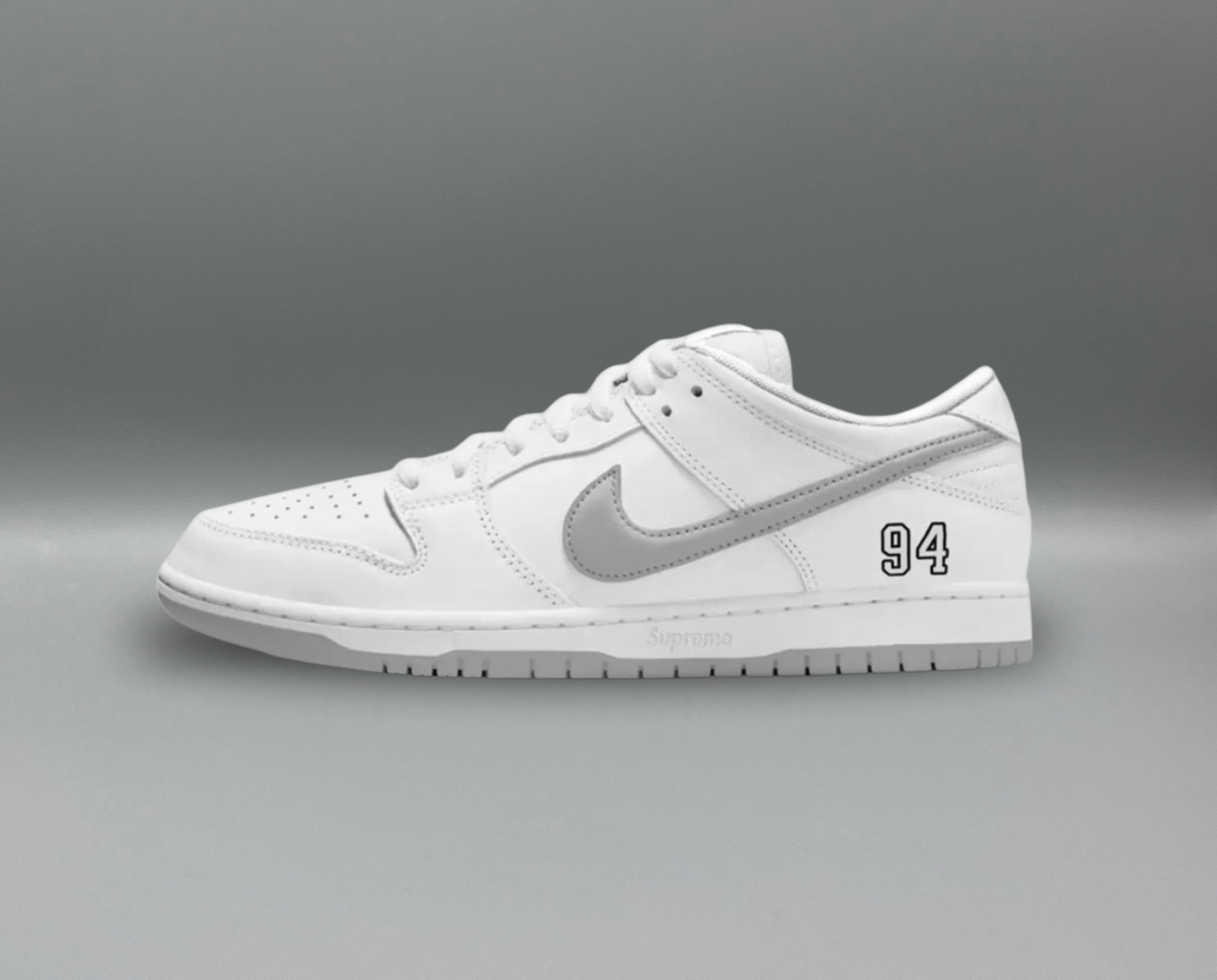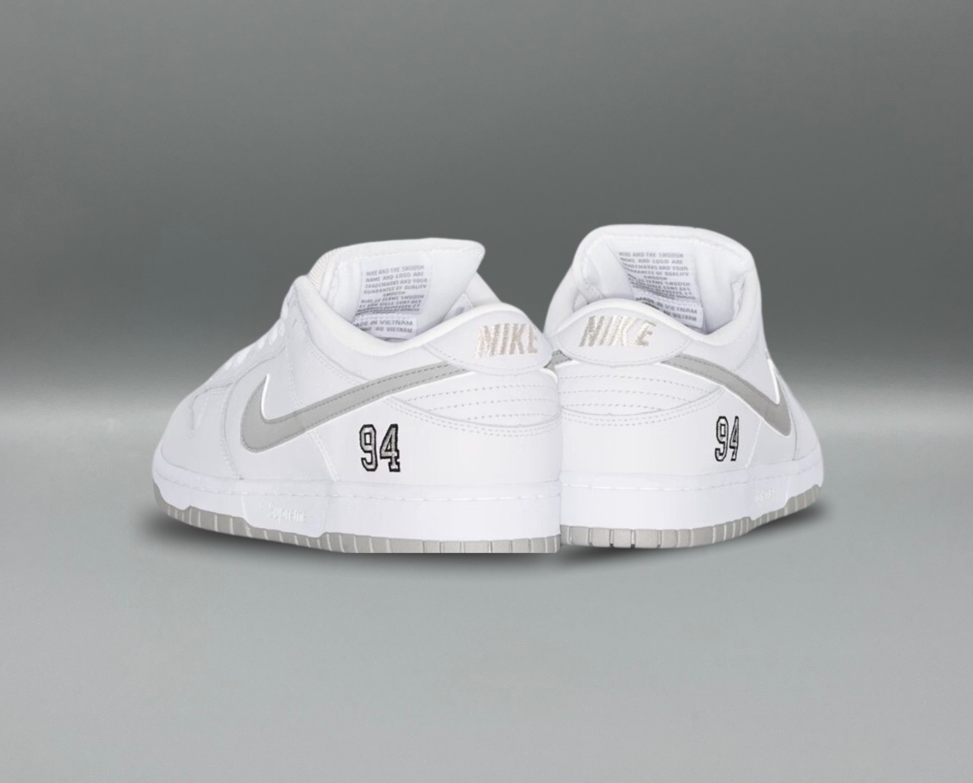 La collaboration entre Nike et Supreme continue avec la Nike SB Dunk Low x Supreme "White". En cuir blanc, ornée d'un swoosh argenté réfléchissant en 3M et du chiffre "94" brodé sur le talon, cette sneaker au style efficace saura satisfaire les amateurs de streetwear et de luxe. Ce coloris est sorti dans le monde entier.