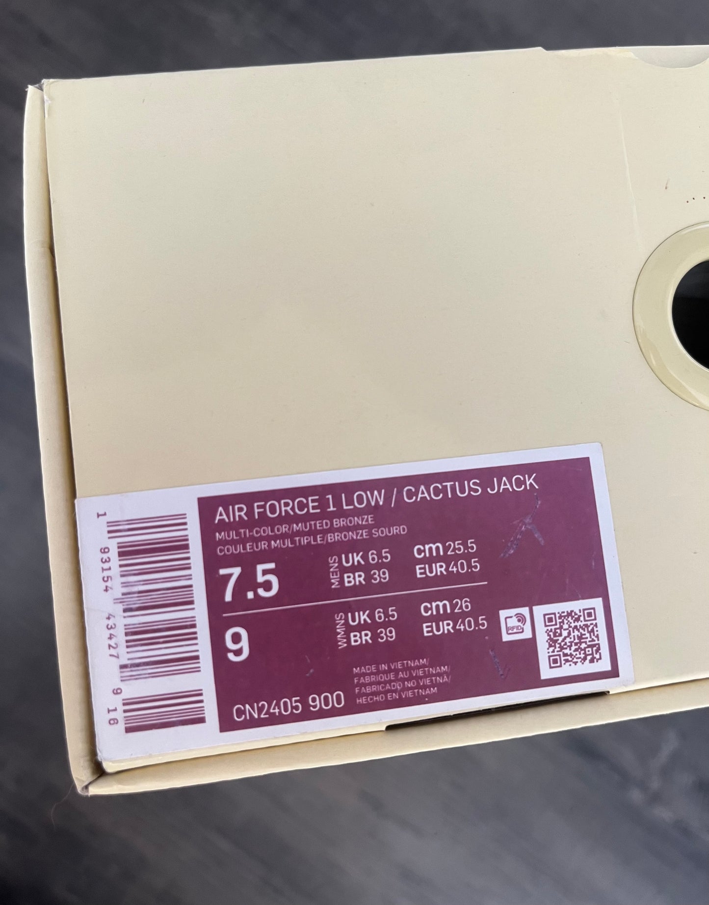 Seconde-Main Nike Air Force 1 Low x Travis Scott "Cactus Jack" (Taille : 40.5)